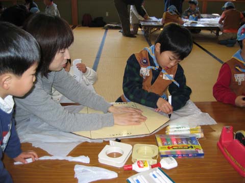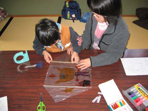 凧つくり名人の説明にしたがって親子で作ります。 レジ袋で簡単にできますが、とってもよく揚がります。 用意するもの 型紙を用意しておくと早くできます。 手順書pdfは→こちら |