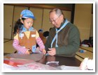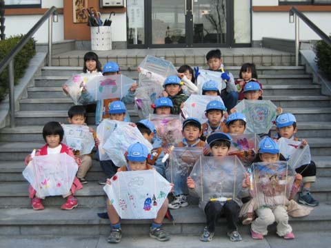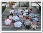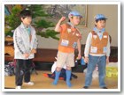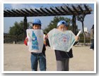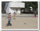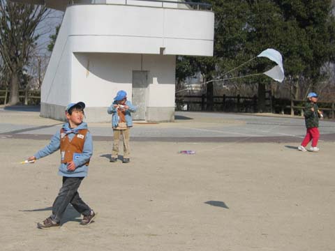 凧揚げ名人誕生! 3人は80mのタコ糸が全部出るほど高く揚がり、名人になりました。 |
