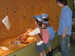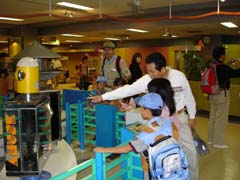 プラネタリウムの後は、理工館の9階まで上がり順に下の階へ降りる見学コースとしました。 各階にいろいろ体験できるコーナーがありました。 |