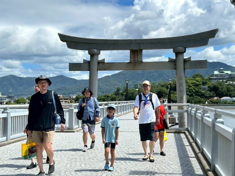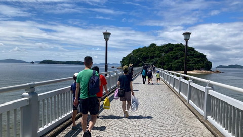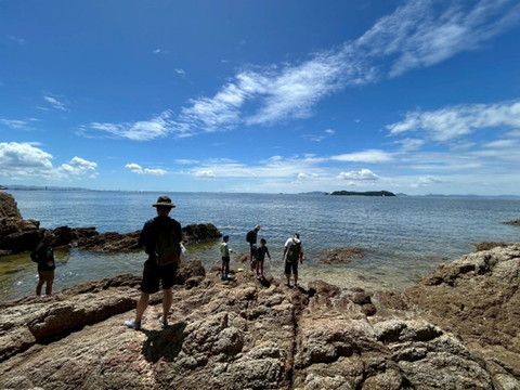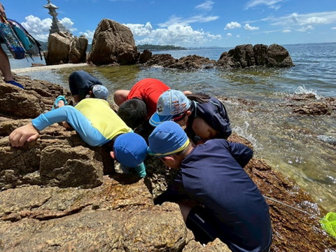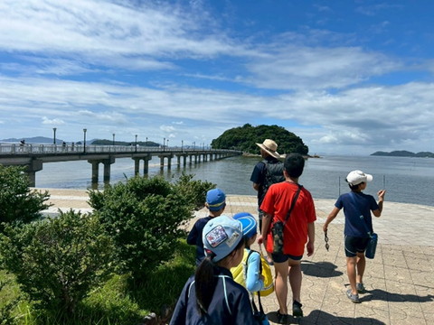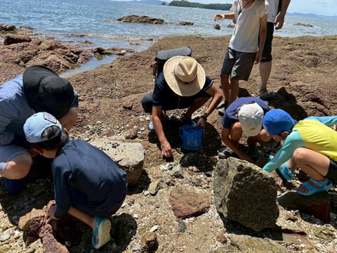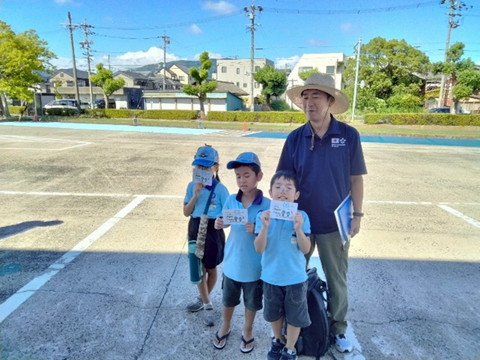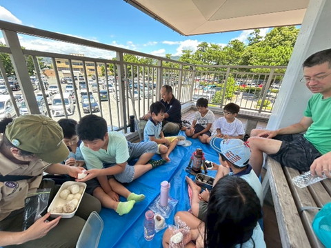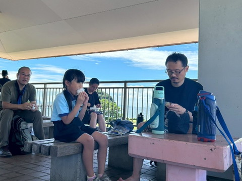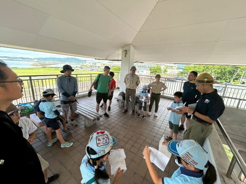 休憩所をお借りして、大輪で集会開始 もらったしおりに、お題が書いてあるよ!