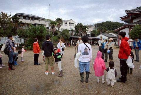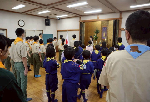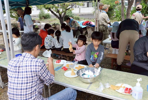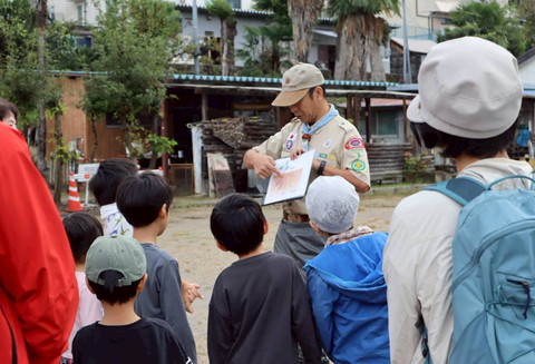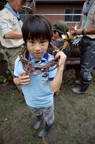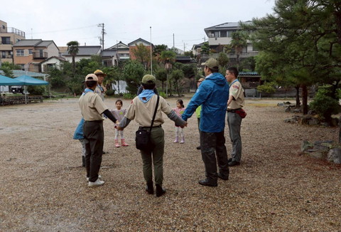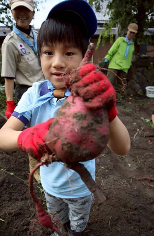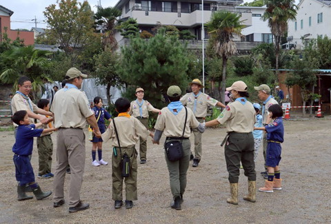 ビーバー隊、芋掘り前の気合を入れた大輪 うまくお芋が育ってるといいなー