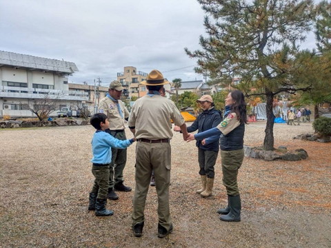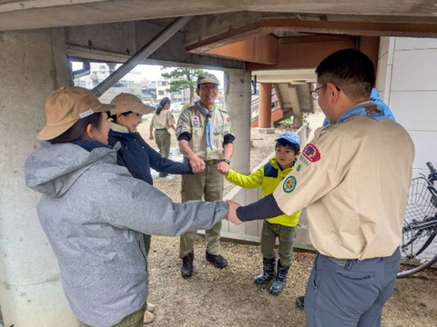 8団全隊で餅つき集会の開会セレモニーを行いました