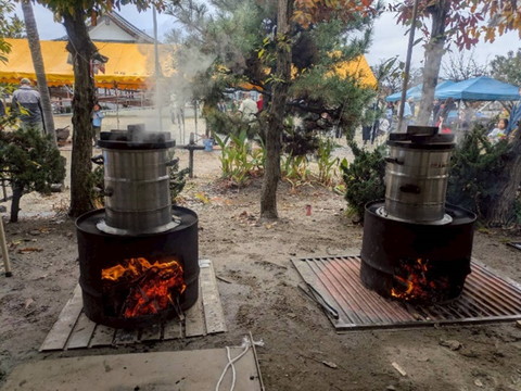 餅つきを始める前に、もち米を蒸したりする準備の説明を聞きました