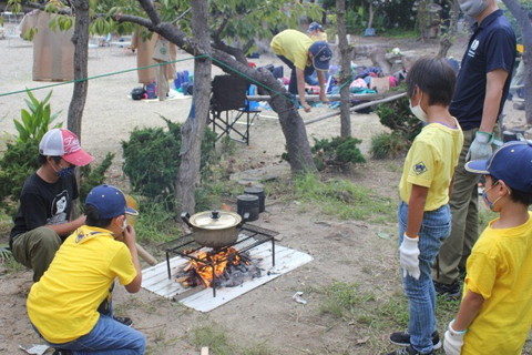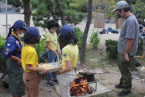 ◆新入スカウトの歓迎で、野外料理(カレー)と営火をしました。
