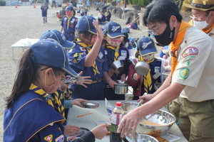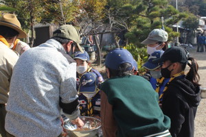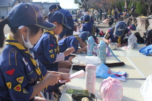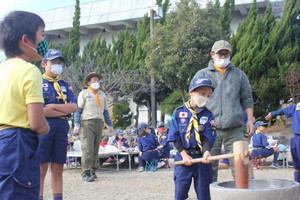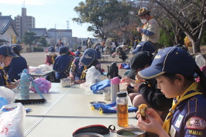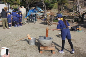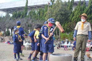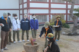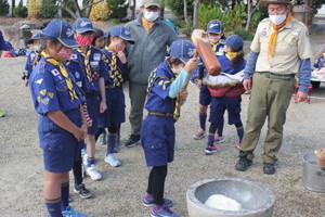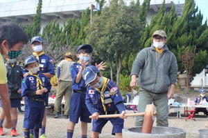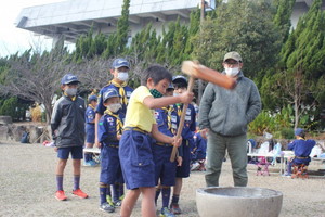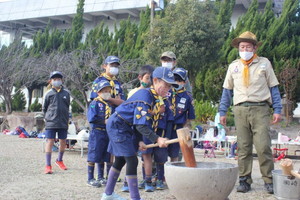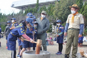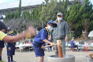 ◆毎年恒例の団行事『餅つき』を行いました。 コロナ禍ということもあり、感染対策に配慮しての開催となりましたが、カブ隊も全員で餅をついて、つきたての餅を美味しくいただくことができました。