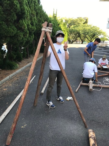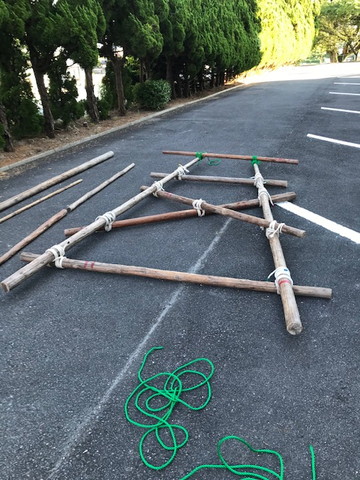 練習で三脚づくりも実施